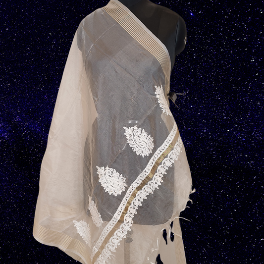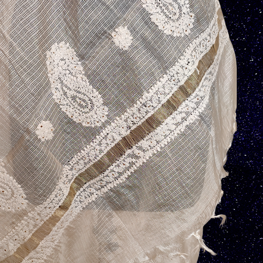 Kota Cotton Chikankari Dupatta with Badla (Dyeable)