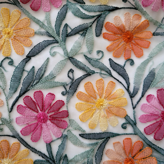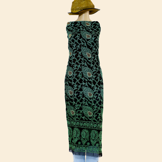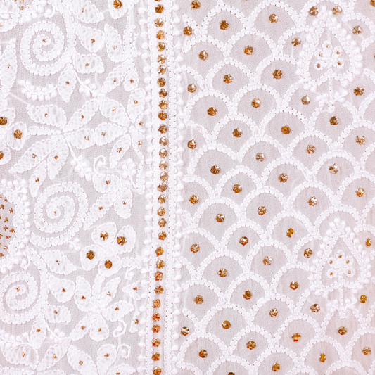 Our chikankari fabric material is made of high-quality cotton, georgette or crepe, and features beautiful floral, paisley or geometric patterns. The fabric is soft, breathable and comfortable to wear, and can be dyed in any colour of your choice. Our chikankari fabric material is inspired by Kanpur, a city in Uttar Pradesh that is known for its leather industry, textile mills and historical monuments. Our chikankari fabric material is perfect for making elegant and graceful outfits, such as kurtas, lehengas or dresses. You can also mix and match our fabric with other materials, such as denim, silk or velvet, to create a fusion Do it Yourself