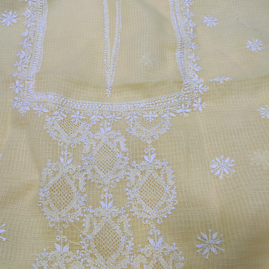 Chanderi Tissue Pure Silk Semi Stitch Chikankari Angarkha Kurta fabric and Dupatta-Dyeable