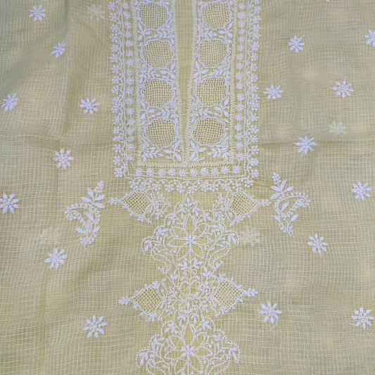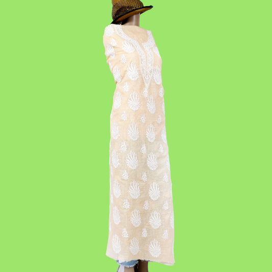 Kota Cotton Chikankari Kurta Fabric (Beige)