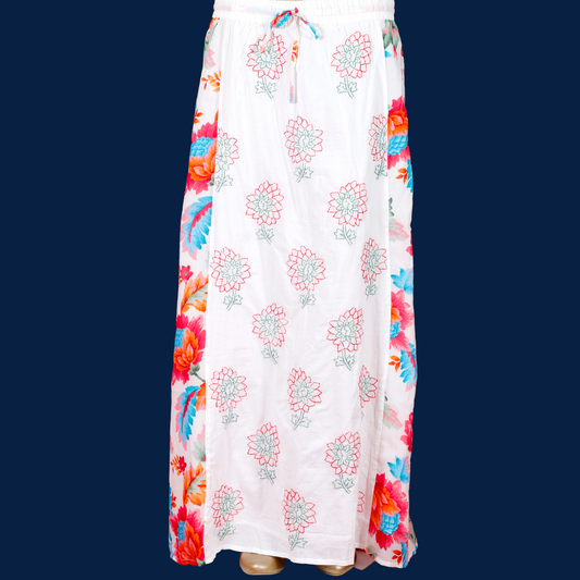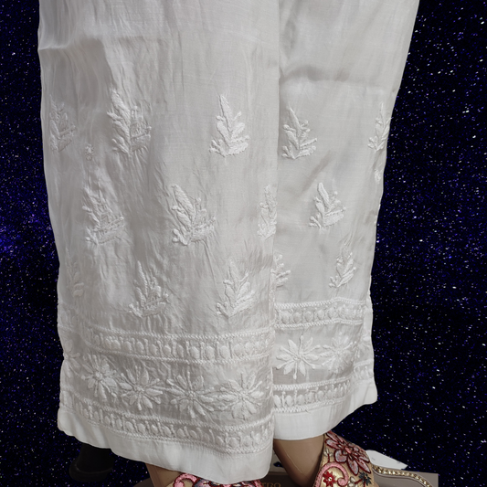 Viscose Georgette Chikankari flare Palazzo with Badla- Dyeable (White)