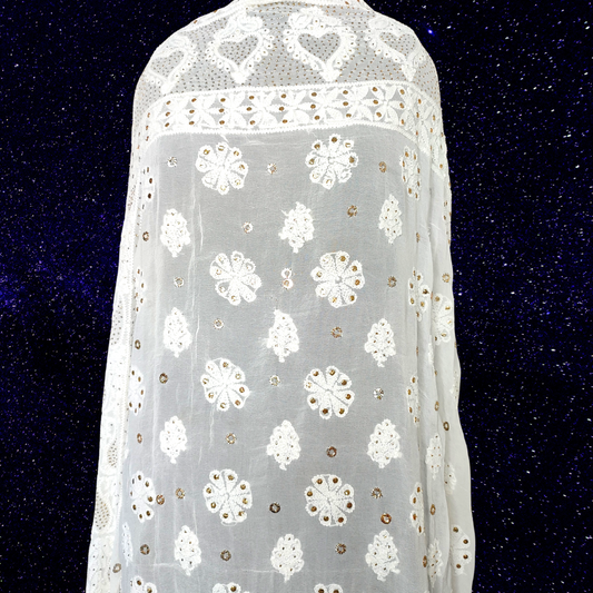 Pure Georgette All Over Chikankari Dupatta with Badla -Dyeable (White)