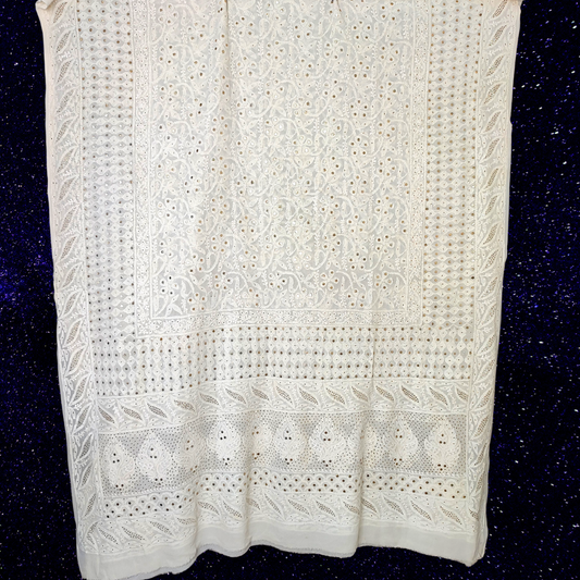 Pure Georgette Chikankari Ghera/ Lehenga Fabric with Badla-Dyeable (Off White)