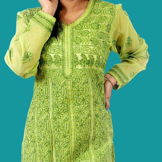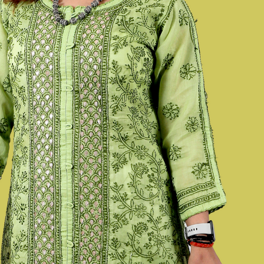 Cotton Chikankari Short Kurti (Green)
