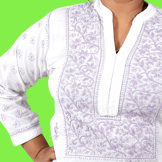 Cotton Chikankari kurta with Purple embroidery (White)