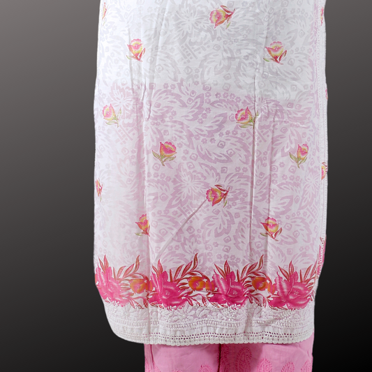 Cotton Embossed Chikankari Kurta with Pink print (White)