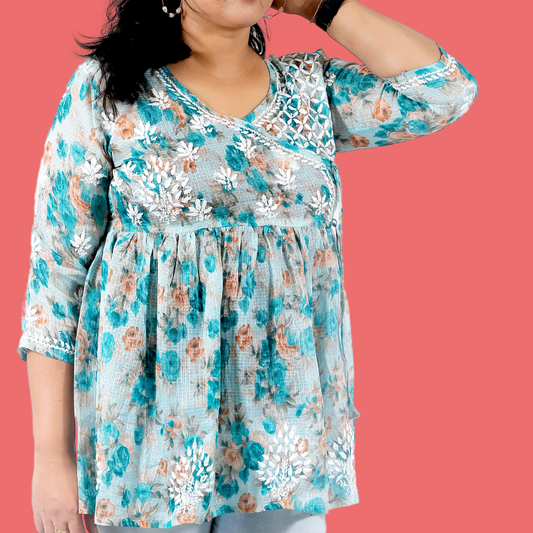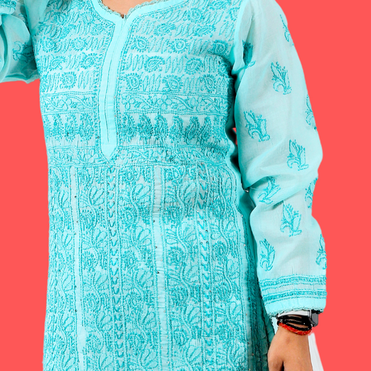 Cotton Chikankari Short Kurti/ Top (Blue)