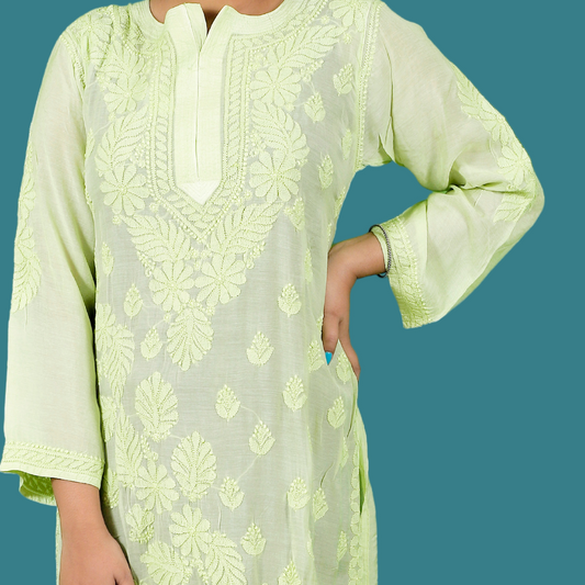 Cotton Chikankari Kurta (Pastel Green)
