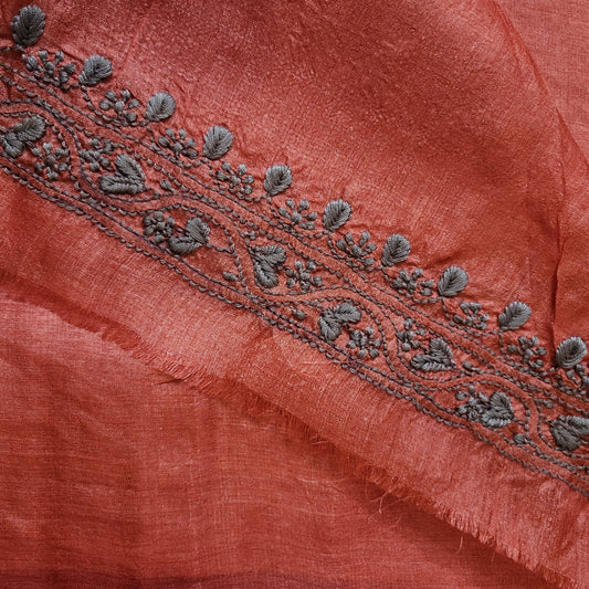Tussar Silk Mens Chikankari Kurta Fabric ( Red )