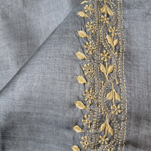 Tussar Silk Mens Chikankari Kurta Fabric ( Grey )