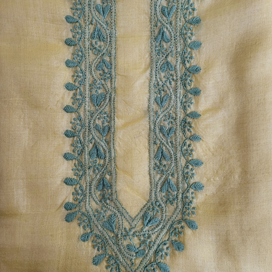 Tussar Silk Mens Chikankari Kurta Fabric ( Golden Yellow )