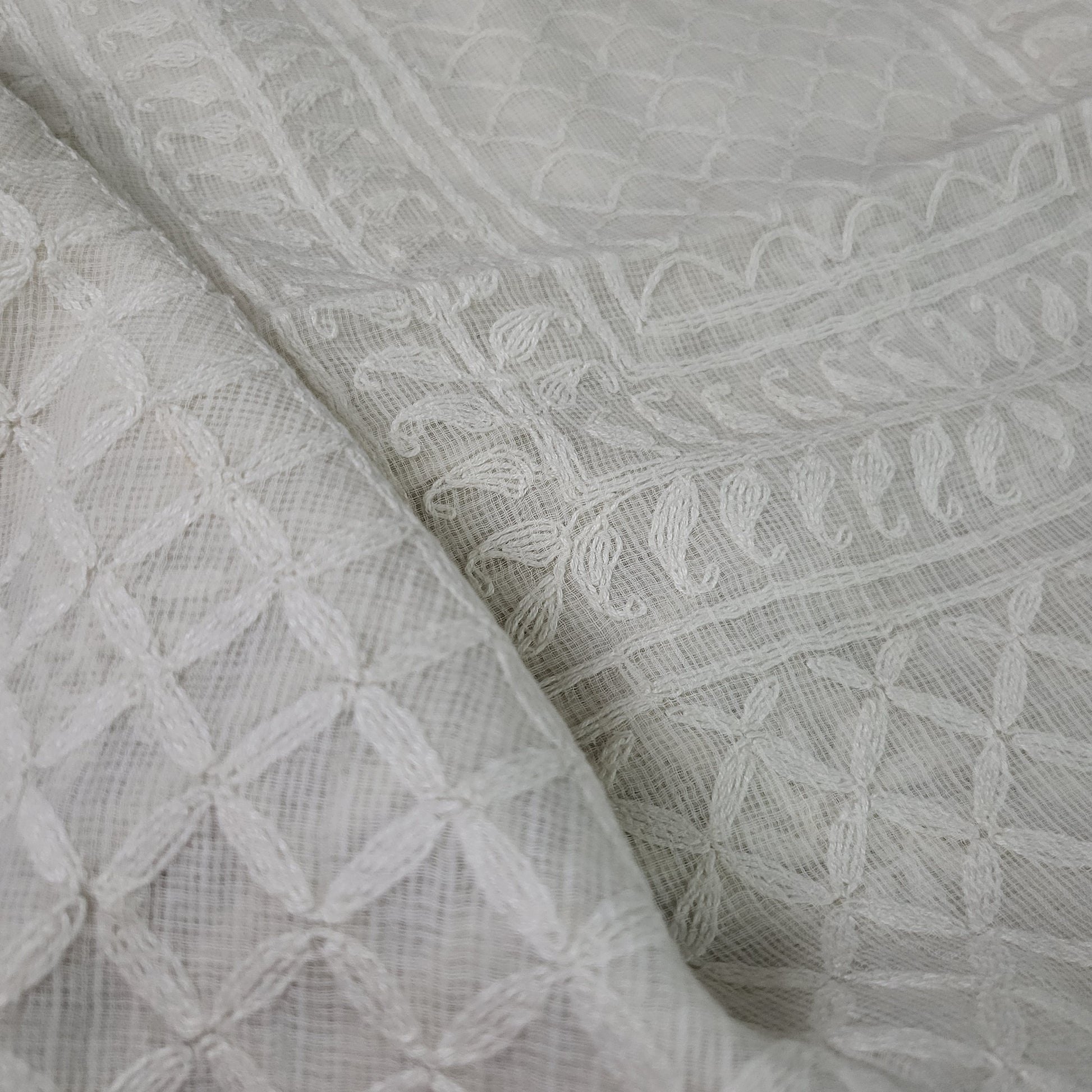 Kota Cotton Chikankari Kurta Fabric (White Dyeable)