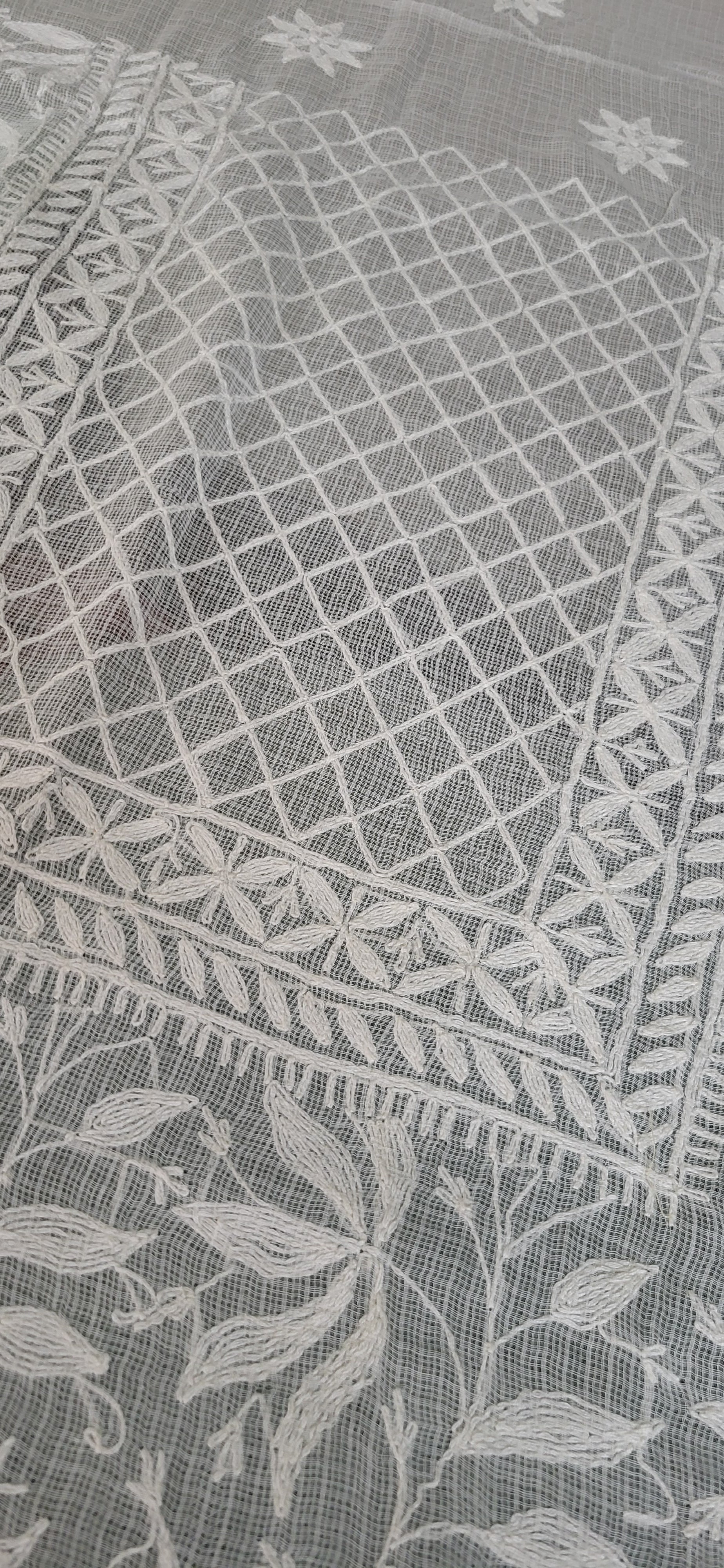 Kota Cotton Chikankari Kurta Fabric (White dyeable)