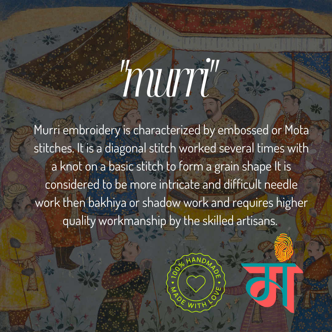 Hand Embroidered product can have minor variations of stitches and motifs. Think of it as the Rolls Royce of Fashion, every piece having a unique charm and having a signature of the artisan who has crafted it.