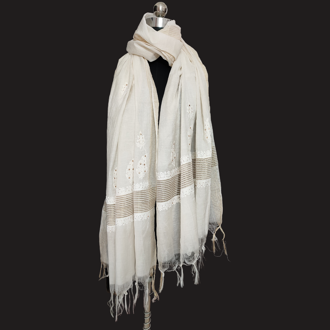 Chanderi Cotton Chikankari Dupatta with Badla (Off White)