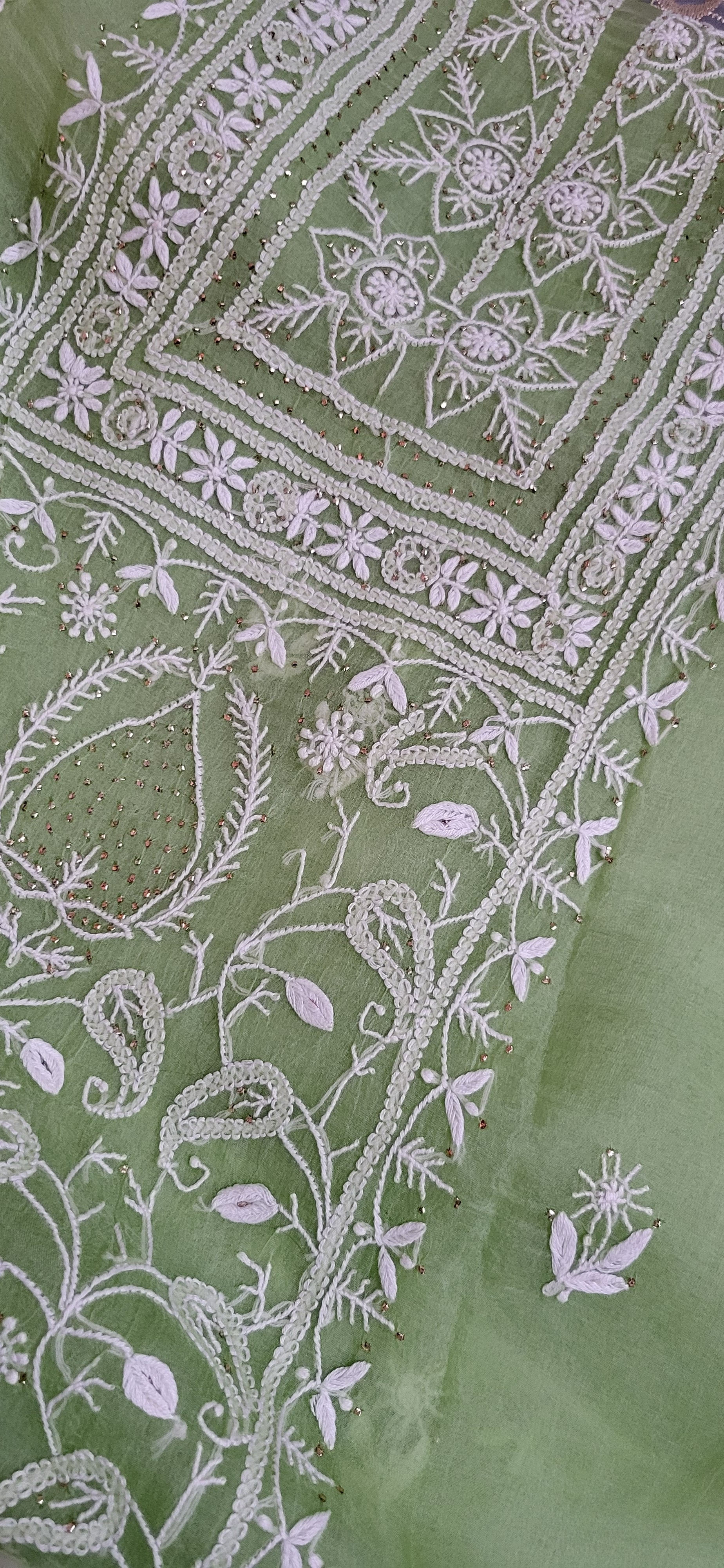 Hand Embroidered Chikankari on Luxurious Organza Silk – Elegant Sheen & Graceful Drape