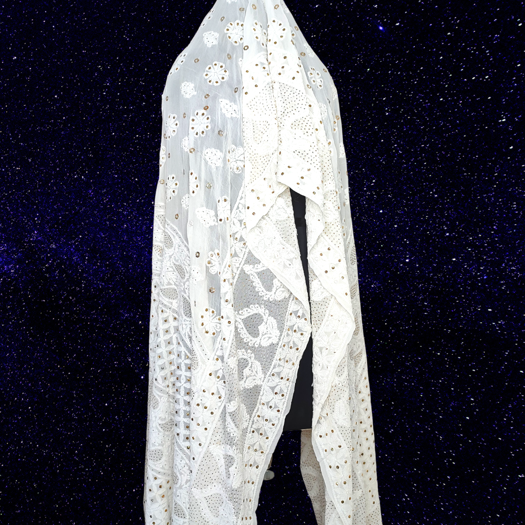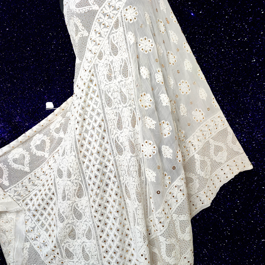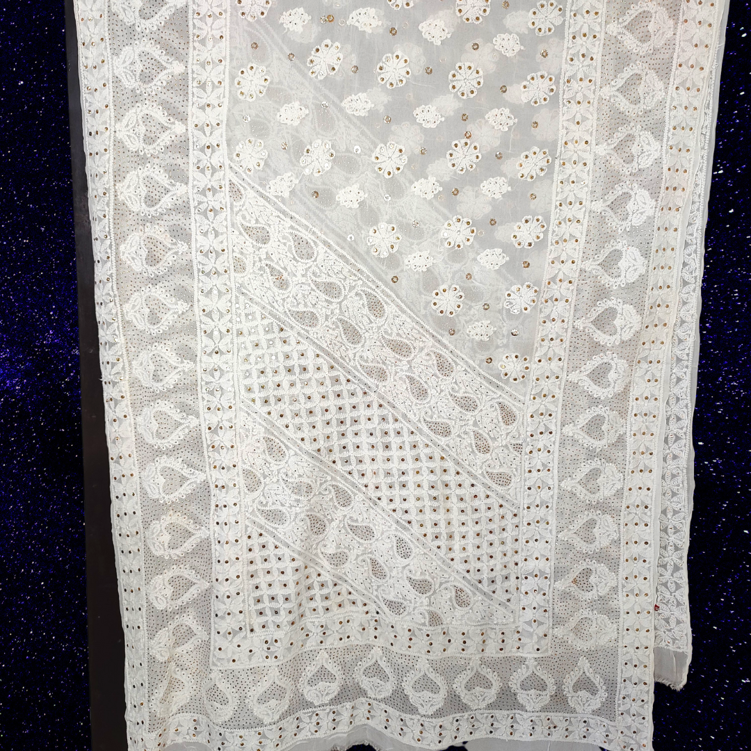 Viscose Georgette All Over Chikankari Dupatta with Badla -Dyeable (White)